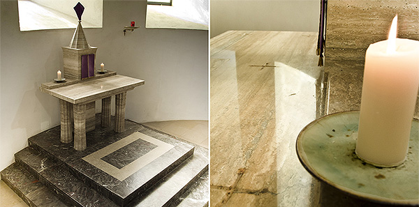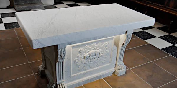 > < Eglise Abbatiale de Notre-Dame de Triors (Drôme) Maître-autel - tombeau en travertin Oniciato - table consacrée en pierre de Belgique - emmarchement en bois jourdan et cenia > < Eglise de Châteauneuf-sur-Isère Création d'un autel à partir de l'ancien bas-relief en marbre blanc de Carrare > < Eglise Abbatiale de Notre-Dame de Triors (Drôme) Détail du chapiteau de colonnette Autel de la chapelle en pierre rouge de nuit > < Eglise Abbatiale de Notre-Dame de Triors (Drôme) Autel liturgique en travertin Oniciato - Emmarchement en bois Jourdan et Cenia > < Cathédrale Saint Apollinaire de Valence (Drôme) Autel et mobilier liturgique en pierre de Tavel > < Eglise Abbatiale de Notre-Dame de Triors (Drôme) Bénitier en marbre blanc de Carrare > < Eglise Abbatiale de Notre-Dame de Triors (Drôme) Tabernacle en travertin Oniciato